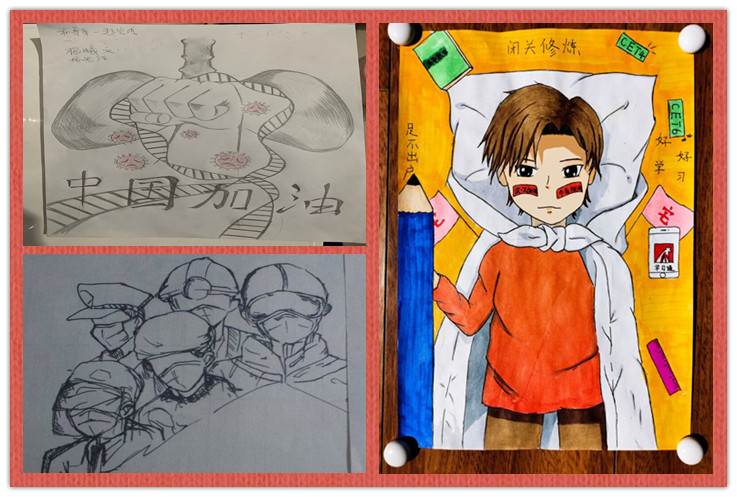本网讯 大疫当前,为响应国家关于疫情防控的重要指示,坚决打赢防控疫情保卫战,电信学子严守学校防疫工作要求,足不出户。宅家期间,为展现疫情防控学院学生的积极乐观的精神风貌,电信学院特开展“且以画笔寄深情”主题创意彩绘活动,面向全院学生征集彩绘艺术作品,用画笔为抗“疫”助力。
