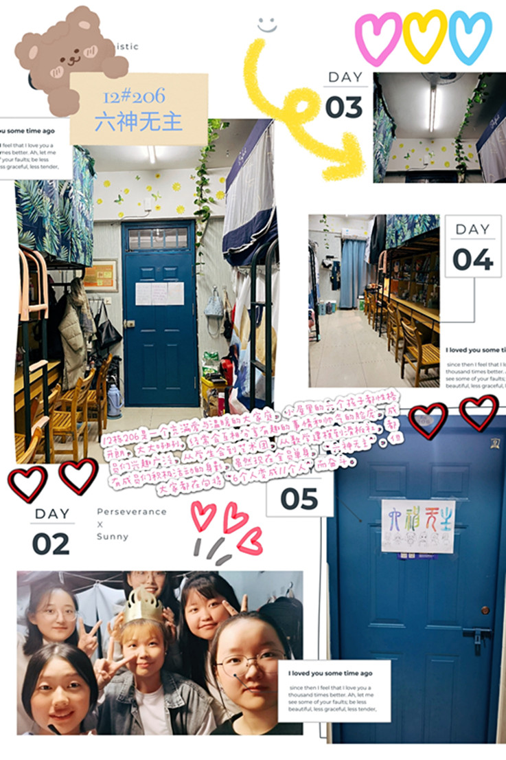 为更好的展现寝室舒适的生活氛围及良好的育人环境,学院学生会工作人员、各班级生活委员、寝室长等提前就发起动员,策划宿舍的改造与装扮工作。宿舍成员们热情满满,各定主题,凸显自己的特色,充分表达对这个“小家”的热爱。