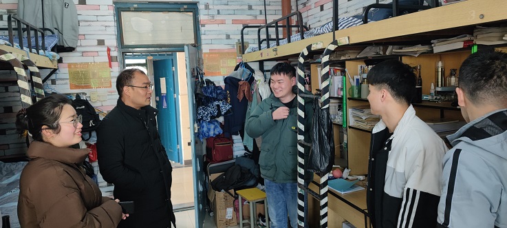 孙长城一行对学院全体宿舍进行了逐一走访,详细询问了学生返校后生活以及期初上课准备等情况,征询学生对学院工作的建议和意见,对宿舍的卫生、物品摆放、桌面整洁、安全用电方面等都提出了具体的要求;提醒同学们养成良好生活习惯,努力学习,营造积极健康的宿舍文化,做一个文明大学生。在走访毕业班宿舍时,孙长城一行详细了解了毕业生考研、就业情况,鼓励大家充分利用各种资源做好研究生调剂复试和实现早日就业。