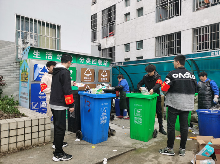 垃圾分类是同学们日常生活动微小但重要的一件事,垃圾分类能促进资源的重复利用,减少垃圾对环境造成的危害。20级计算机科学与技术专业的志愿者们分批次来到11-14栋宿舍楼下,帮助保洁阿姨对垃圾进行回收处理,并引导前来投放垃圾的同学进行垃圾分类。在劳动中,同学们更加深刻的认识到垃圾分类的重要性,也体会到阿姨们工作的辛苦,经由大家共同努力,原本杂乱的回收站变得干净整洁。