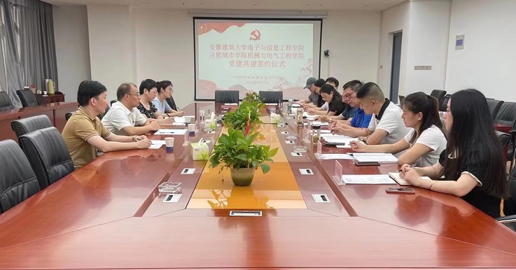 本网讯 为深入推进学习贯彻习近平新时代中国特色社会主义思想主题教育,加强党组织联建共建促发展工作,推动党建和业务深度融合。6月27日下午,安徽建筑大学电子与信息工程学院与合肥城市学院机械与电气工程学院举办党支部结对共建签约仪式。签约仪式由合肥城市学院机电学院院长刘家琪主持。