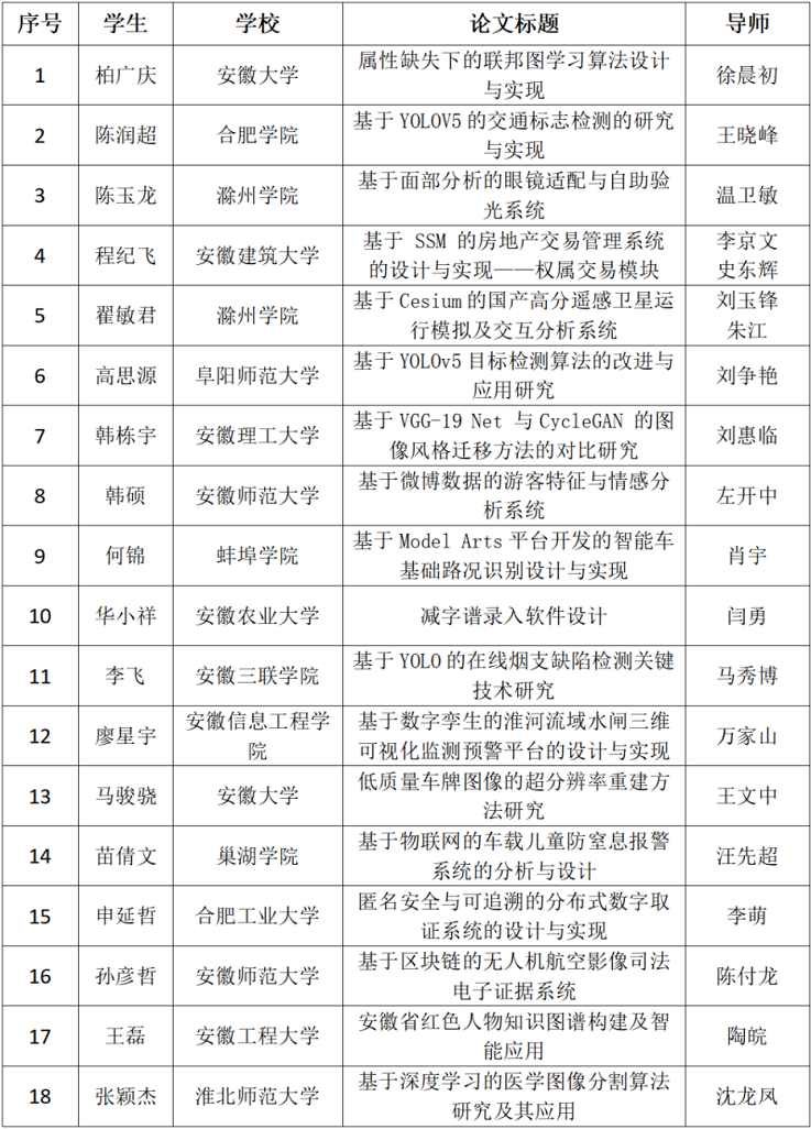 电信学子获安徽省计算机学会优秀硕士和本科毕业论文