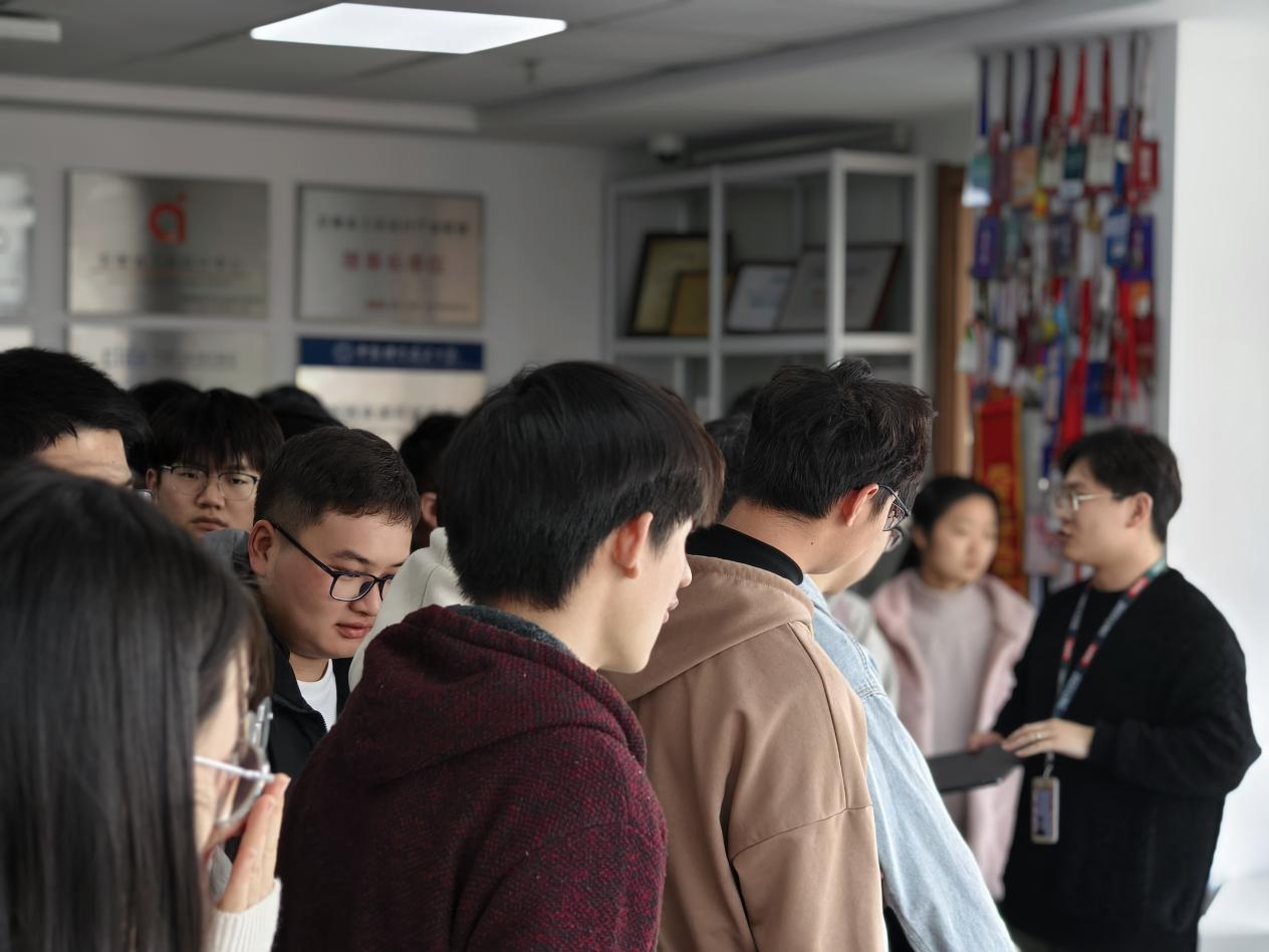 在调研洽谈开始前,电信学院40余名毕业班学生乘坐大巴来到联宝科技研发中心进行实地走访参观,在工作人员的介绍下初步了解公司研发情况,切身感受工作环境。随后,在联宝科技会议室开展2024春招专场宣讲会。