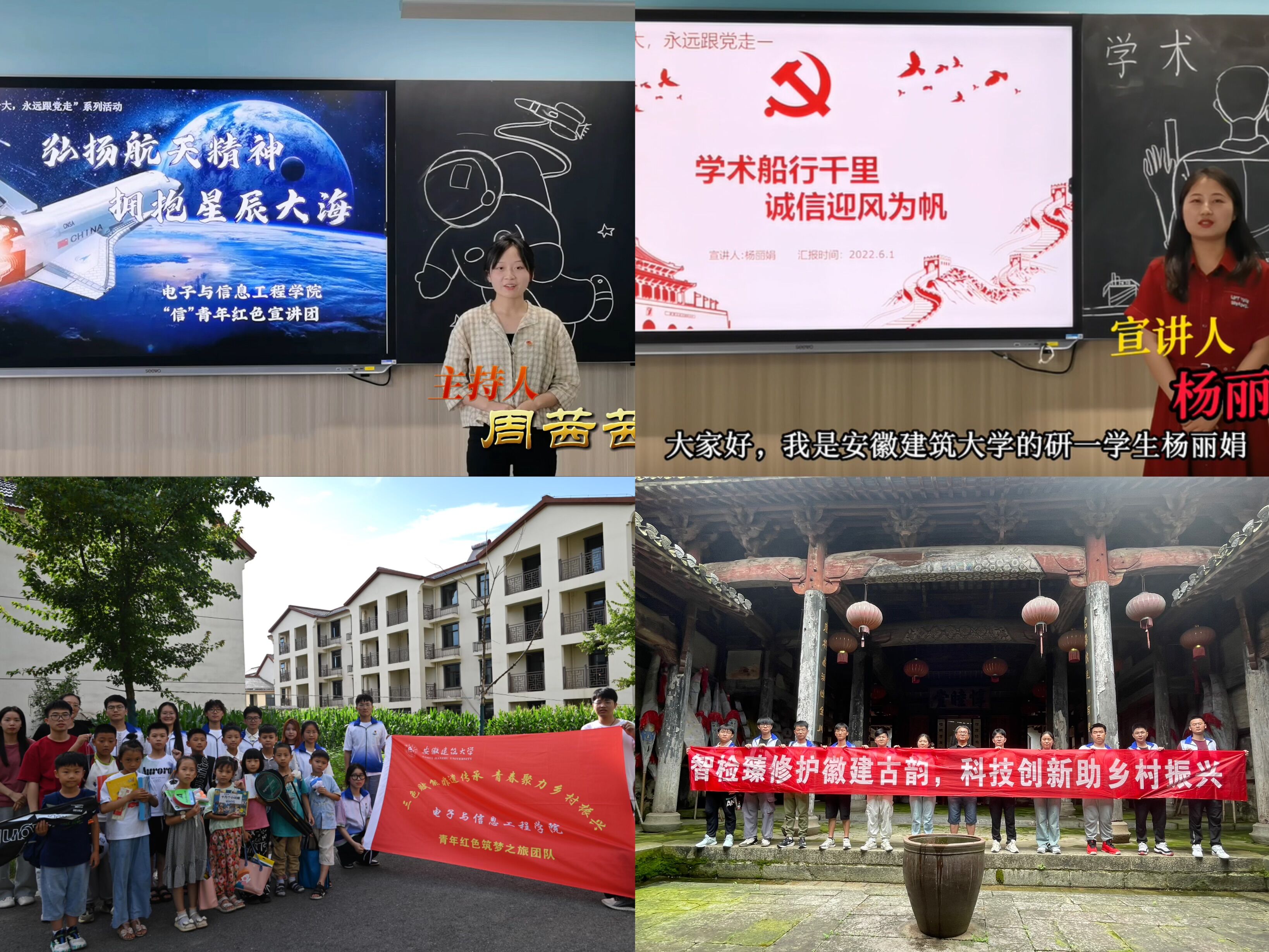 学院重视发挥新媒体在思想引领、红色文化传承等方面的积极作用,主动遵循新媒体语言和运作规律,加强内容策划,设置“理论学习”专栏,用青年学生喜闻乐见的形式及时、准确、全面的传递党的声音。学院微信公众号平台、易班发展平台等配合理论学习,积极举办“追‘锋’前行 做进步青年”“美丽安徽 我来解说”“以国之名 悼我同胞”等实践活动,深入浅出带领学生理解时代旋律和国情省情,筑牢青年信仰之基。学院组建“信青年”宣讲团,选拔优秀学生代表,用青年人听得懂、喜欢听的方式,把握时代精神,围绕“‘三色’赋能非遗传承,青春聚力乡村振兴”“讲述红色建筑,传承文化基因”等主题,常态开展宣讲。
