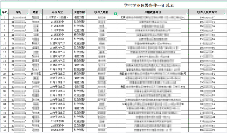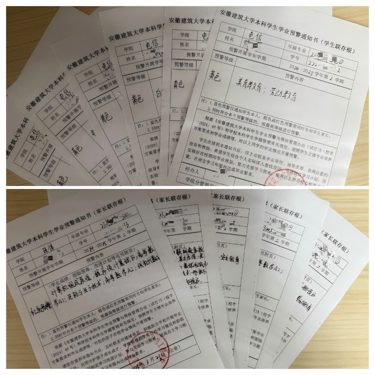 针对学业困难学生,建立“预警-帮扶-跟踪”闭环机制。通过对学生日常课堂表现、期末考试成绩等分析,对获得学分较少的学生及时发放学业警示单,辅导员联合学业导师,量身定制个性化提升方案,开展课业辅导;深化家校协同育人,定期向家长反馈学生在校学习情况,寄送学生在校成绩单,邀请家长共同参与学生学业规划,形成家校教育合力。本学年累计帮扶学业困难学生300余人次,多名学生实现成绩明显提升。