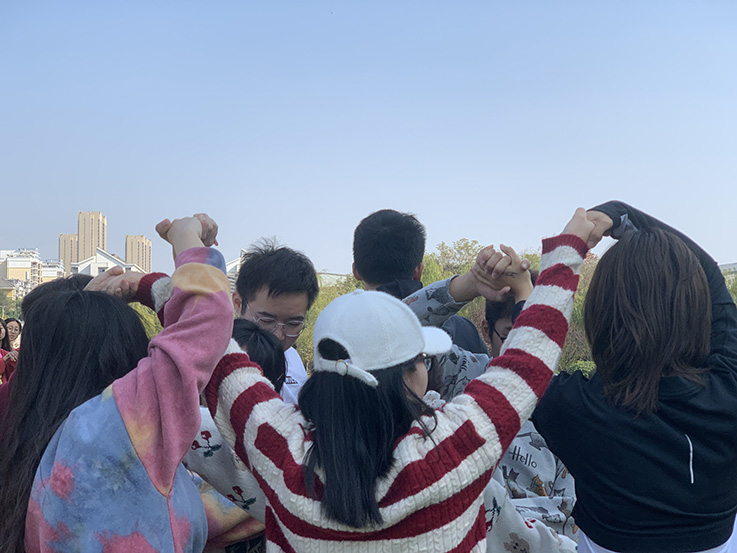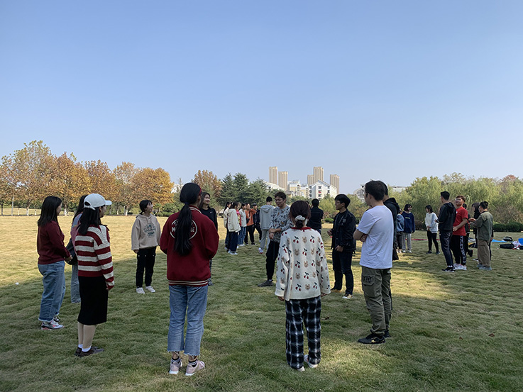 阳光明媚的秋日午后,20级新生辅导员周娅子和周大年两位老师带着同学们来到活动场地。在老师的组织和鼓励下,同学们大方的自我展示,并开展了松鼠搬家、巧解千千结等团辅活动。