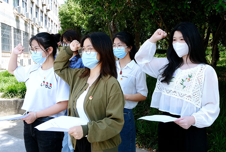 春和景明,当许诗书。自古好书便与美景相配,校园里有许多同学的手间正捧着心爱的书,看得如痴如醉,偶然探访宿舍,会看到一名遨游书海的书“痴”。教学楼前,同学们正三五成群地走过,突然人群中响起一声激昂,几名同学从人群中走出,站到一起,“天地苍苍,乾坤茫茫,中国少年顶天立地当自强!”当《少年中国说》响彻整个操场,快闪活动持续推向高潮,更多的同学被吸引进来。
