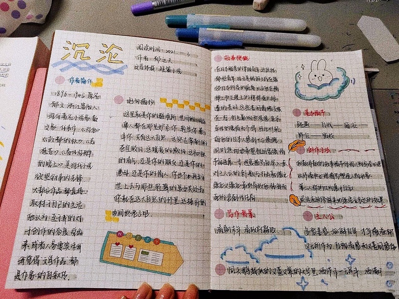 西塞罗曾说:“读书可以抚育青年,慰藉老年。读书可以增进幸福,消灾解愁。在家时,给你带来快乐;外出时,让你心旷神怡。”书籍中的话语仿佛闪着光,有种让人忍不住誊抄的魔力。看这精美的笔记,凝聚了主人读书的收获与心血,又何尝不是一件艺术品呢?读书笔记让每个人都成了黑白纸张上的艺术家,专心致致地创作属于自己的悦读世界。