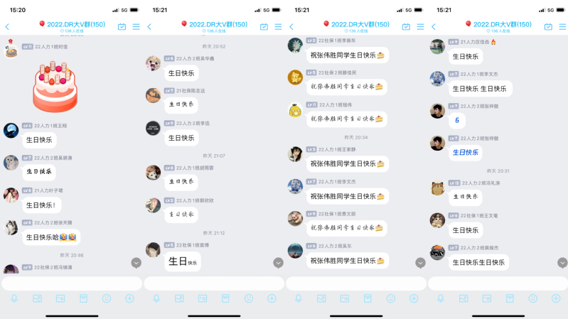 夜幕降临,也正是第一天进入大学新生的思乡时刻,两位新生来到F楼二楼中庭生日会现场,惊讶和兴奋之余,更多的是感动和高兴。学院师生为两位“寿星”带上生日帽,唱起了生日歌、寿星们也在歌声中闭上眼睛许愿,烛火映照着他们青春的脸庞,不知道寿星们许的愿是不是有关接下来充满希望的大学生活呢?许愿结束后,大家切蛋糕,送祝福,每个人脸上都洋溢着真挚的笑意。张伟胜同学表示:“太惊喜了,这是我度过的最难忘的生日!”“学院能给我们庆生,我非常感动,第一天就感受到了来自异地的别样温暖。”陈冯强同学欣喜地说道。最后,所有的师生进行了合影留念,在大家热情洋溢、团结友爱的氛围下本次生日会圆满落幕。(文/图:于静言 牛勤;审稿:李道先)