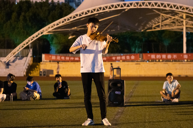 伴随着帅气、活力满满的TT群舞表演,在主持人热情洋溢的贺词中,中秋晚会正式揭开神秘的面纱,欢快的节奏呈现出浓郁的青春气息,也点燃了观众心中的热情,学生们纷纷登台献艺。“在漫天风沙里,望着你远去”悦耳的歌声相融交汇,不断叩击我们的心弦,思乡之情如同涓涓细流从心间涌出;诗歌朗诵《月光下的中国》慷慨激昂,声声入耳,勾起学子对祖国秀美山河的自豪与向往;一曲《青花瓷》动人心弦,勾勒出烟雨如织的江南画卷;在仇保琛同学的小提琴伴奏下,丁昕冉同学曼妙的舞姿一展良辰风采,婉转的琴声与精彩的独舞交相辉映,再度点燃现场的温馨气氛。