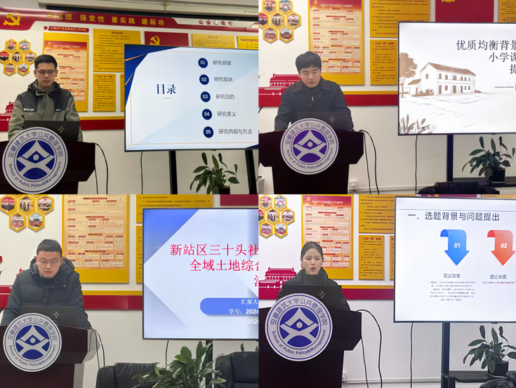 在报告分享环节,李松彦以《基层警察压力成因与应对策略研究——以H市X所为例》为题,从三类压力维度剖析基层警察困境,构建协同治理体系,为公安管理部门优化制度、提升效能提供支撑。陆阳斌以《优质均衡背景下县域农村小学课后服务质量提升路径研究——以S县H镇为例》为题,针对县域农村小学课后服务师资短缺、资源不足等痛点,创新提出本土资源赋能协同多元主体思路,开发农业民俗特色课程,明确家校社协同路径。吴霁以《新站区三十头社区全域土地综合整治谋划方案》为题,以农旅融合典范为目标,提出小田变大田、产业导入等措施及三类安置方案,兼顾耕地保护、农民增收与生态底线。闫琰以《普通高校本科毕业生慢就业问题的协同治理研究》为题,聚焦合肥市慢就业率攀升现状,以重点产业链人才服务机制为案例,厘清群体特征与成因,为政府优化就业政策提供实证参考。