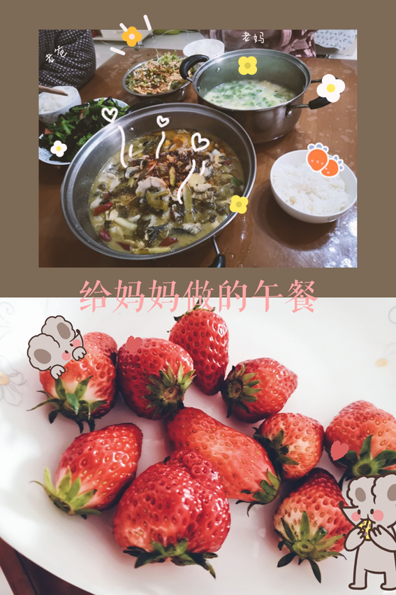 “制作”——心灵手巧的同学们,或是制作一张张简单的小贺卡,或是亲力亲为做一桌丰盛的佳肴,或是写一封信送给自己的妈妈。每一份礼物都流露着对母亲的感恩。