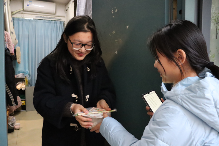 第二阶段则是把学生们每六人分为一组,进行饺子接力游戏和大胃王挑战游戏。现场气氛热烈,同学们互相品尝包好的饺子,其中带花生的饺子被赋予特殊的含义,吃到的同学将获得冬至节美好的祝福。活动结束后还为一些同学打包送去了热气腾腾的饺子,将暖暖的情谊传递开来。
