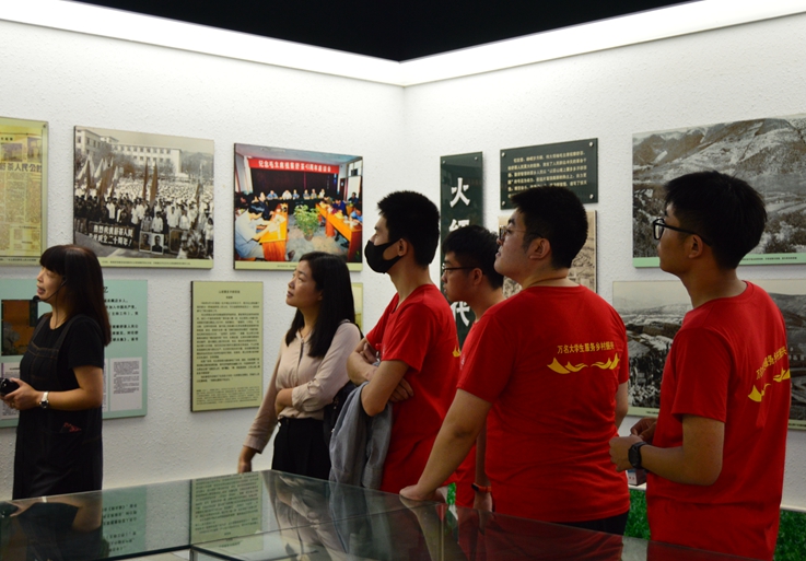 在毛主席视察舒茶纪念馆,实践团成员满怀敬意地瞻仰毛主席全身铜像,认真聆听讲解员讲述毛主席视察舒茶人民公社的历史,实地参观“九一六”茶园,远望青岗云梯,对毛主席考察期间那句“以后山坡上要多多开辟茶园”的号召深有感悟,重温党的革命路线,追寻党的红色脉动。