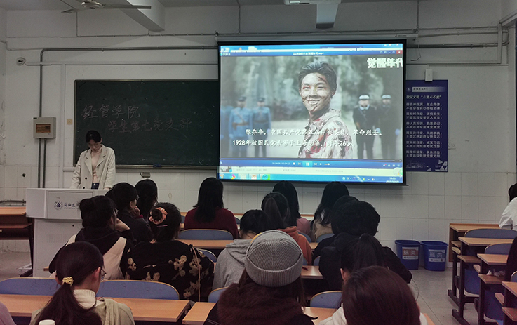 本网讯  “立身以立学为先,立学以读书为本。”为提高学生党员思想政治水平,强化党性修养,争做合格党员,不断将党史学习教育走深走实。10月22日,经管学院学生第七党支部在C204教室开展读书分享主题党日活动。分享会上,支部党员结合自主学习内容,选取书籍或影像节选,以生动的形式分享给其他同学,并畅谈学习感受。