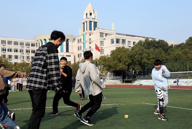 运动会包括两人三足、躲避球、踩气球、拔河四个趣味项目。比赛过程中,同学们努力拼搏,全力以赴,既有趣又激烈,既赛出风采又凝聚情谊。尤其是踩气球活动,既考验队员之间的巧妙配合,又考验个人耐力和体力。在两个班对决中,队员们有进有退,你“争”我“斗”,“打”得不可开交。场外同学呐喊声此起彼伏,现场氛围热烈,和谐有序,整个活动伴随着欢声笑语,其乐融融,运动场成为欢乐的海洋。
