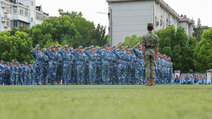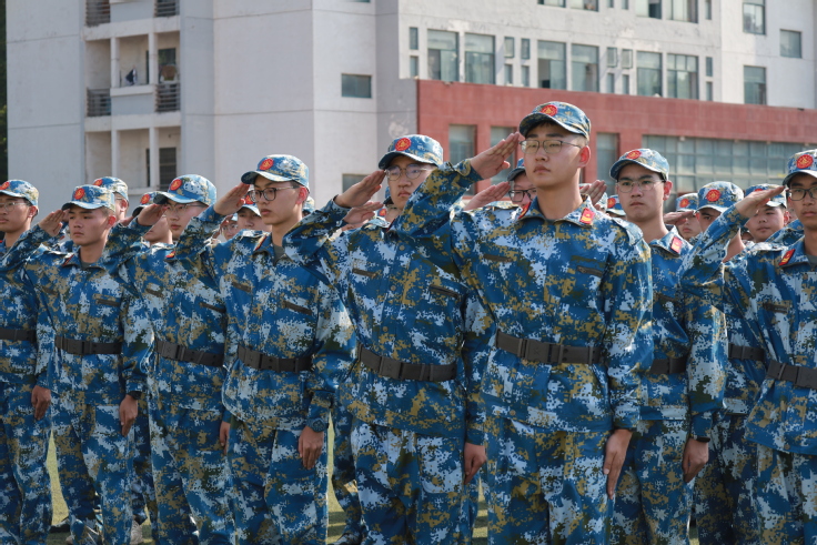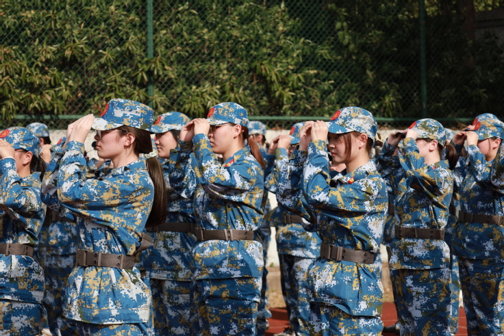 清晨的军姿开启了第一天的军训时光,仲秋的骄阳不输夏日,绿茵场上热情不减。清澈而坚定的蓝绿色在操场上列着整齐的队伍,稍息、立正、齐步走,一令一动尽显青年人的朝气蓬勃、意气风发。声声口号展现着青春的力量,簌簌汗水折射出努力的光芒。“文明其精神,野蛮其体魄。”军训的实际训练有利于培养同学们坚韧不拔的意志品质,在增强体质的同时,促进优良精神品格的形成与发展。希望同学们能将军训中学习到的军人作风贯穿进学习生活中,不断磨练自己、提升自己,创造出独属于自己的青春光彩。