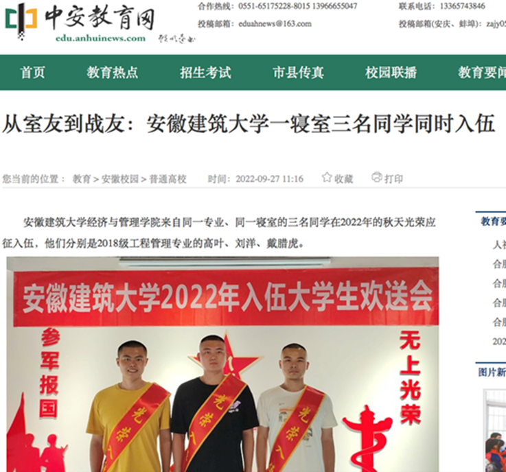 组织全体师生观看中国共产党第二十次全国代表大会开幕会、开展学院领导深入学生班级宣讲党的二十大精神、庆祝建团100周年等系列活动,引导广大学生立志做有理想、敢担当、能吃苦、肯奋斗的新时代好青年;围绕爱国主义教育、爱校荣校教育,开展“我们都是‘小白杨’”系列征兵主题教育活动,同时通过微信公众号、官方抖音和易班等平台进行线上宣传,有力带动了同学们的入伍热情,学院征兵工作好的做法和学生应征入伍的先进事迹被中安教育网以“从室友到战友:安徽建筑大学一寝室三名同学同时入伍”为题进行了报道,形成了良好的示范效应;以心理辅导站环境改造为起点,结合主题教育开展层次分明、覆盖面广、形式新颖的心理健康系列活动。先后开辟“心语花园”微信公众号专栏、“5.25”心理健康月系列活动、“相识相知,遇见美好”新生心理团辅活动、心理委员及信息员培训会及心理嘉年华系列活动等,在全院范围内形成了自尊自信、理性平和、积极向上的心理氛围,充分发挥活动育人功能。