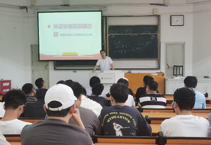 本网讯 为深入贯彻落实习近平强军思想,进一步落实学校相关征兵工作要求,鼓励和引导大学生积极应征入伍,近日,经管学院毕业班年级召开征兵宣传主题班会。