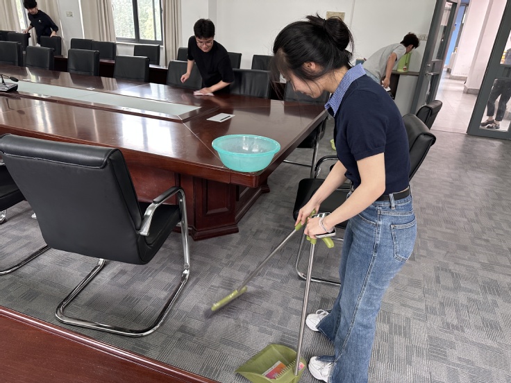 学习结束后,全体党员前往学院教室开展劳动教育实践活动。大家分工协作,认真清扫地面、整理档案、擦拭桌椅,以实际行动践行“劳动最光荣”的理念。毕业生党员徐秋然表示:“劳动不仅锻炼了我们的动手能力,更让我们深刻体会到党员的责任与担当,未来无论走到哪里,都要保持踏实肯干的作风。”