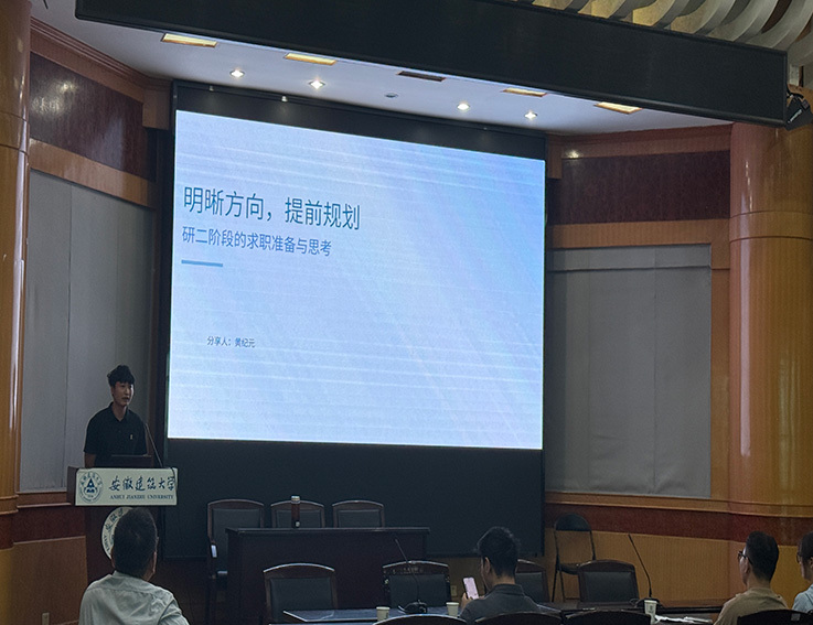 本网讯 秋意渐浓,初心始燃。为更好地帮助24级的研究生们明确未来学习科研方向,9月20日上午,在建树楼报告厅举行了优秀学长学姐交流主题班会。四位在就业、读博、考编等不同领域取得突出成绩的优秀学长与大家面对面交流,为同学们搭建起“听过来人说、走更清晰路”的成长桥梁。会议由学院专职组织员、24级研究生辅导员高德龙主持。
