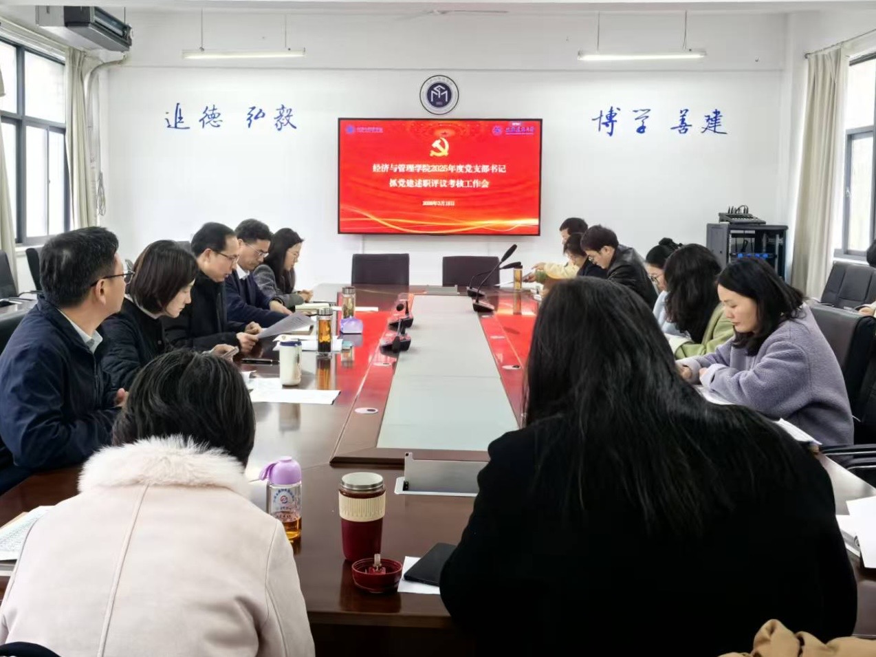 本网讯 3月18日,经济与管理学院党委召开2025年度支部书记抓党建述职评议考核工作会议。学院党委班子成员、各党支部书记参加会议,会议由学院党委书记潘和平主持。