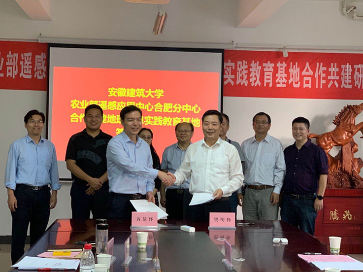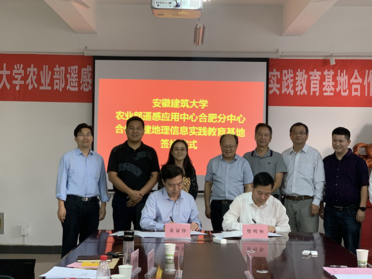 会议过程中,环能学院汇报了基地建设规划,双方审议了《安徽建筑大学农业部遥感应用中心合肥分中心地理信息实践教育基地合作共建协议》,并进行签约、授牌。