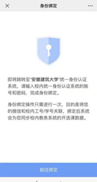 初次参与者需先进行身份绑定:微信扫描班级二维码(或用微信直接搜索)并关注“长江雨课堂”微信公众号,点击【绑定身份】,搜索“安徽建筑大学”进入绑定页面,输入校内统一身份认证系统的账号和密码,即可绑定。