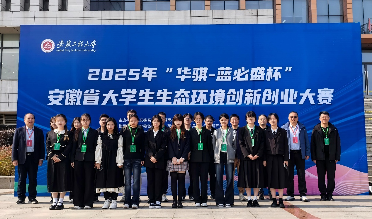 本网讯 11月15日,2025年“华骐-蓝必盛杯”安徽省大学生生态环境创新创业大赛决赛在安徽工程大学成功举办。大赛在安徽省教育厅、芜湖市生态环境局和安徽省环保产业协会的指导下,由安徽省普通本科高校环境类专业合作委员会主办,安徽工程大学承办,安徽华骐环保科技股份有限公司、江苏蓝必盛化工环保股份有限公司、安徽欧鑫环境科技股份有限公司和安徽优环环保设备制造有限公司协办。此次大赛有本科生和研究生两个赛道,分新产品研发、新工艺设计和创意设计三个组别进行,共有来自中国科学技术大学、合肥工业大学、安徽大学等省内24所高校的112支参赛队伍参加决赛。