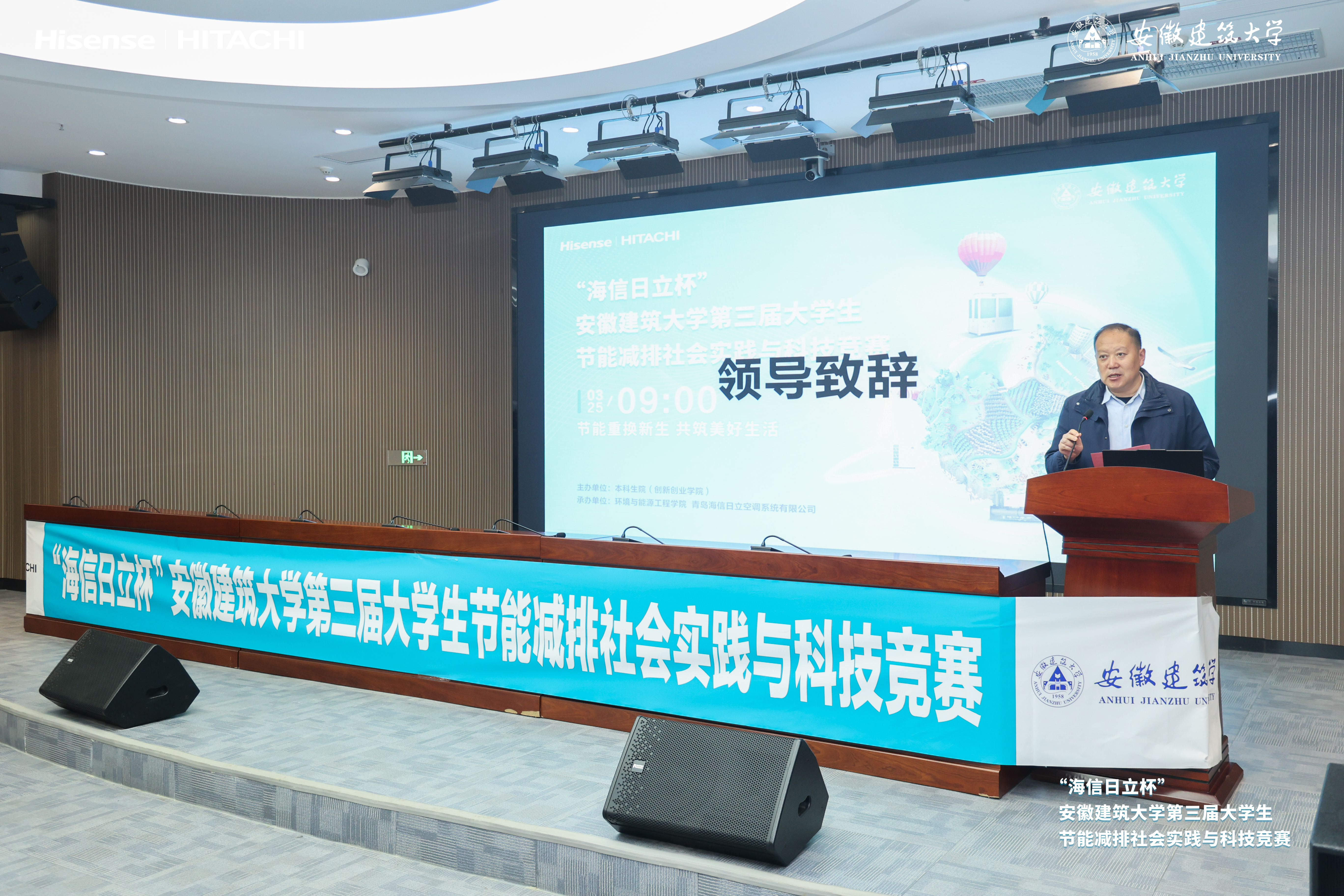 本网讯 绿韵筑园凝智慧,低碳逐梦聚芳华。为深入贯彻国家“双碳”战略目标,厚植绿色低碳发展理念,激发大学生创新创造活力,3月25日上午,由安徽建筑大学本科生院(创新创业学院)主办,环境与能源工程学院、青岛海信日立空调营销股份有限公司合肥分公司联合承办的“海信日立杯”安徽建筑大学第三届大学生节能减排社会实践与科技竞赛,在安徽建筑大学紫云路校区徽智楼报告厅圆满落幕。经层层初选,学校17组优秀作品脱颖而出。