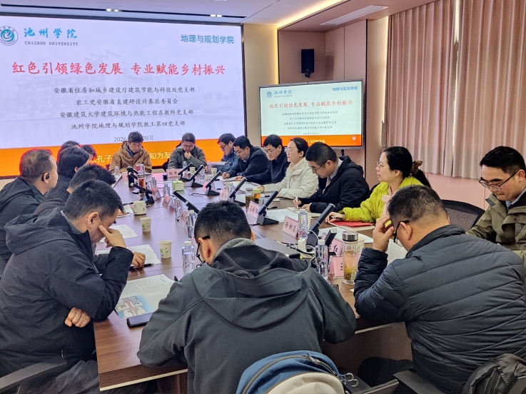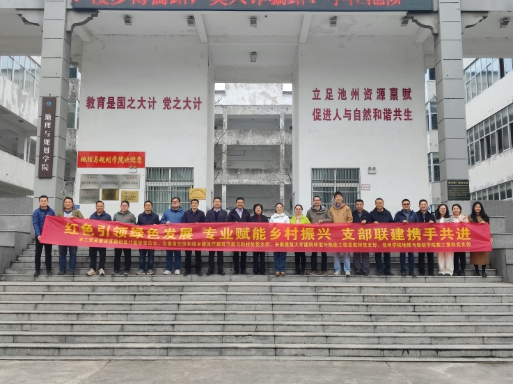 本网讯 为深入贯彻落实国家“双碳”战略与乡村振兴决策部署,深化党建引领下的产教融合与校地合作,近日,安徽建筑大学环境与能源工程学院建筑环境与热能工程系教师党支部(以下简称“建环系党支部”)与安徽省住房和城乡建设厅建筑节能与科技处党支部(以下简称“科技处支部”)、农工党安徽省直建研设计基层委员会(以下简称“建研设计基层委”)、池州学院地理与规划学院教工第四党支部(以下简称“第四党支部”)共同召开支部党建联建交流会。四家单位的党员代表及相关领域专家齐聚池州,共谋党建引领事业发展新路径。