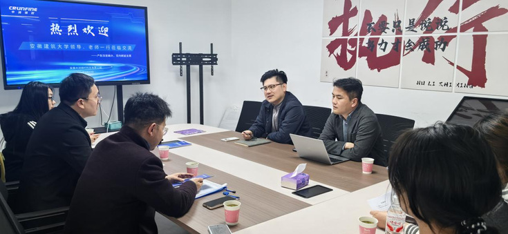 本网讯 为扎实推进2026年“挑战杯”等“三大赛”科创赛事备赛工作,加速科创项目孵化落地,同时深化校企协同育人机制,拓宽毕业生就业渠道,3月27日,安徽建筑大学环境与能源工程学院党委副书记王昊禾、团委书记孙晓庄带队,组织“智光护安”“智感红恒”“知途智汇”等重点科创团队师生一行赴安徽中润锦实科技有限公司开展专项实践调研与合作交流活动,通过技术交流、需求对接、岗位洽谈,为产学研合作、科创项目孵化升级及毕业生高质量就业搭建坚实桥梁。