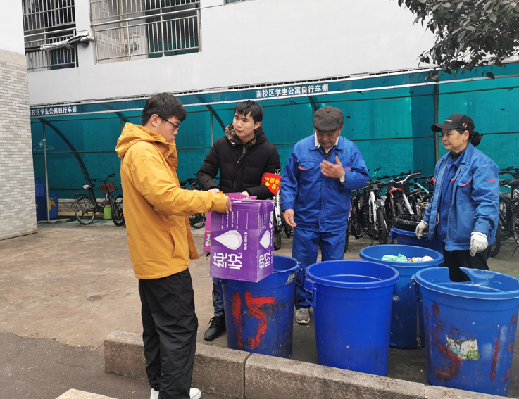 目前,南校区生活垃圾工作已全面推行,启动定时定点投放等精细化管理措施,组织学生志愿者在投放时段进行桶边指导,后续也将继续开展垃圾分类培训、宣传等工作,推动垃圾分类工作常态化持续有效开展。