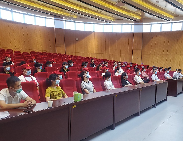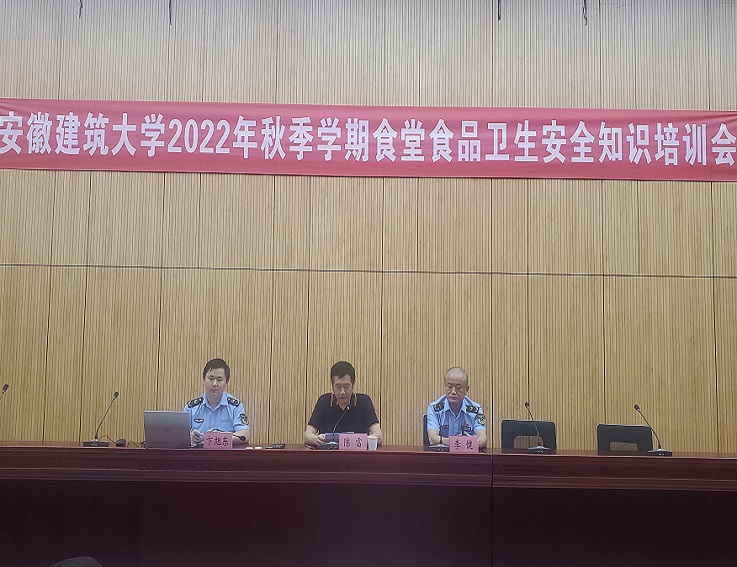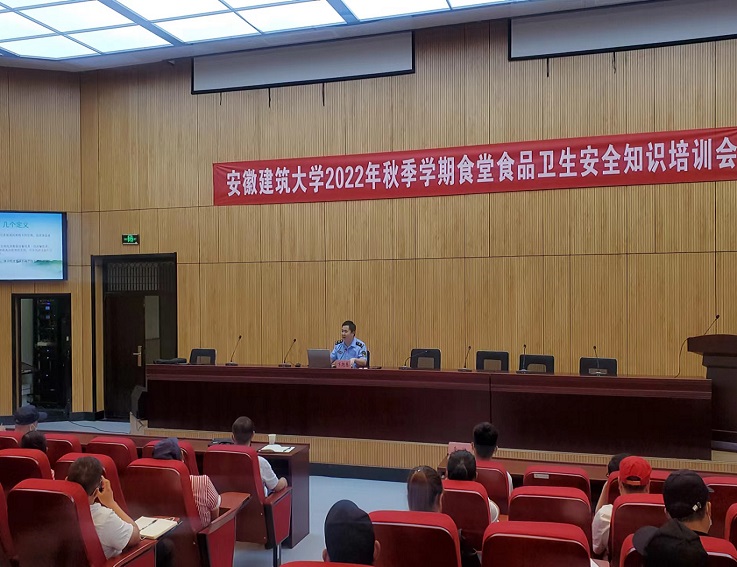 本网讯 为进一步提高和巩固学校食堂员工的食品安全知识及餐饮服务能力,8月29日,后勤服务集团特邀经开区市场监督管理局食药科卞旭东主任和属地锦绣市场所负责人李健,在南校区实训楼二楼报告厅举办安徽建筑大学2022年秋季学期食堂食品安全卫生知识培训会,集团饮食中心以及驻校餐饮服务企业负责人、新进员工近50人参加培训。