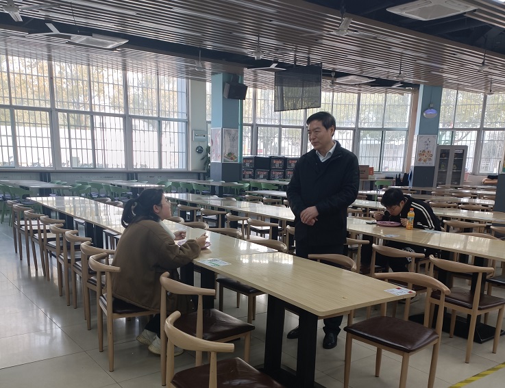 就餐大厅内,黄显怀认真查看各档口午餐供应情况,详细询问菜品价格和保温状况,要求食堂负责人严格把控菜品质量和价格,做好饭菜保温措施,为校园师生员工提供可口的热饭、热菜。他强调,学生食堂要加大人文关怀,把学生当成自己家的孩子,用心用情做好各项服务,多和同学们沟通交流,及时回应他们多元化的需求,让同学们感受到学校的关爱和温馨。