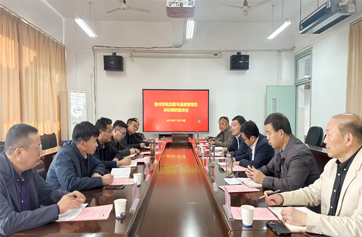 本网讯 11月14日,宿州学院后勤与基建管理处处长王绍卫带队来校调研后勤基建工作,后勤基建处负责人及相关科室人员参加座谈。