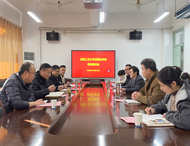 本网讯 12月25日下午,安徽工业大学后勤处副处长涂必华、基建办副主任蒋宗平一行到访我校,调研后勤保障、基建等工作。后勤基建处副处长王旭东及相关科室负责人热情接待,双方在友好氛围中分享了经验与创新实践。