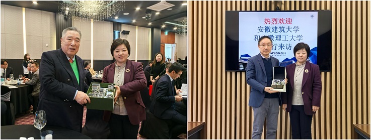 访问期间,李早教授代表学校分别向韩瑞大学、明知大学赠送了由我校建筑与规划学院新徽匠学堂师生团队研发、获安徽省徽派建筑重点实验室学术支持的《乐·在徽州》积木原型。该作品融合徽派建筑文化与现代设计语言,成为传播徽州文化、促进国际交流的创新载体,受到外方高度评价。