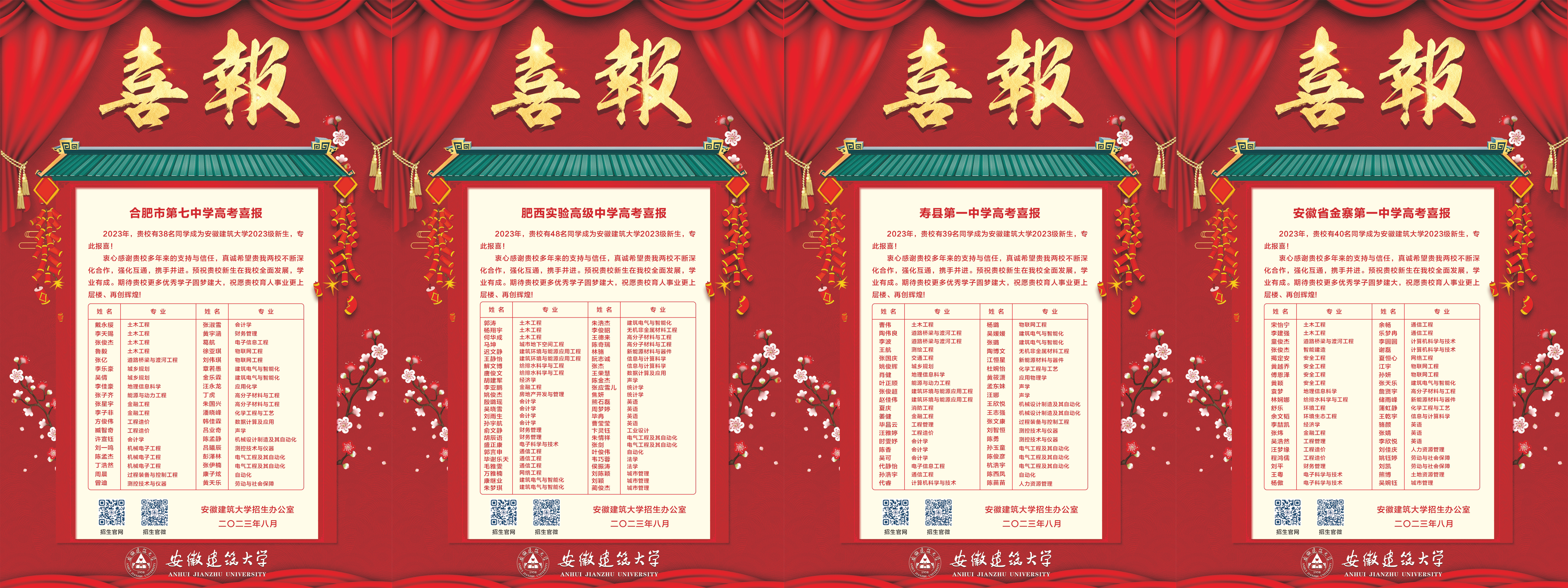 本网讯 8月11日,随着第五批新生录取通知书完成寄发,历时近两个月的安徽建筑大学2023年普通高考招生录取工作顺利结束。