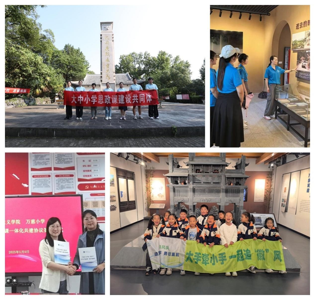 实践研学筑根基,主题育人树新风。学院结合学生成长需求与育人目标,联动校团委、学生处开展多元化实践活动,实现师生同频共振与学风引导双向发力,如深化校内外实践基地联动,依托与金寨革命博物馆、凤阳小岗村、万佛湖、万慈小学等10余个共建实践教学基地,组织“红色足迹寻访”“新徽派与乡村振兴调研”“大中小学思政课一体化建设”“思政课实践教学”等活动,师生同吃同住同实践,教师现场传授理论知识与调研方法,学生分组协作完成数据收集、报告撰写,形成“师生共学、教学相长”的良好氛围。《寻迹三线遗址群 助力乡村振兴路》入选2025年“人民公开课”,并在全国展示。