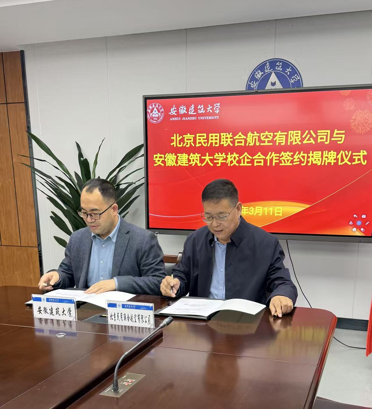 本网讯 为精准对接国家航空产业及低空经济发展对高素质技能人才的迫切需求,受北京民用联合航空有限公司委托,学校将围绕航空服务、飞机维修、航空全媒体等航空领域岗位需求开展针对性岗前培训。3月11日下午,安徽建筑大学与北京民用联合航空有限公司校企合作交流对接会暨航空人才教学基地签约揭牌仪式在学校紫云路校区徽风楼举行。校党委常委、副校长杨科,北京民用联合航空有限公司党委书记宋军良出席仪式并致辞,学校本科生院(创新创业学院)、合作发展处、后勤基建处相关负责人及北京民用联合航空有限公司相关负责人出席本次活动。