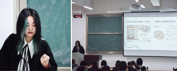 动员会最后,上一学期前往台湾东海大学工业设计专业交流学习的22级工业设计专业王曈晔同学,对交流期间的生活、学习以及参加当地设计竞赛的获奖经验,进行了生动的讲述和分享。