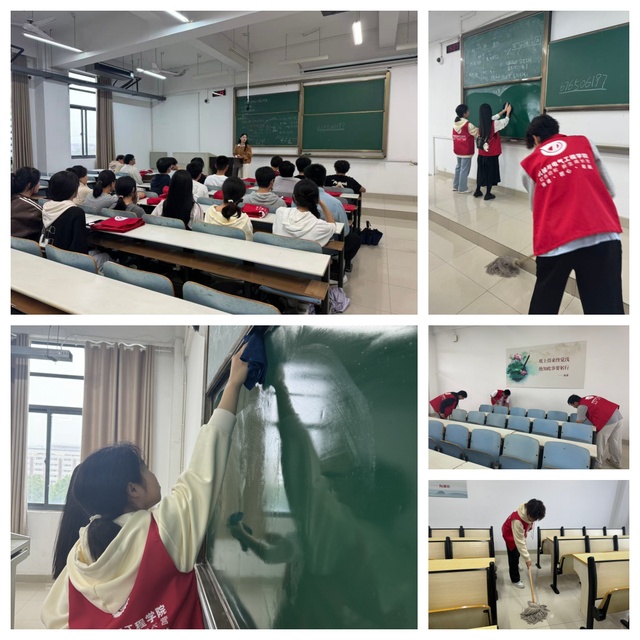 逸夫教学楼里,2025级新生们手持清洁工具,细致擦拭黑板、整理讲台、清扫地面。“以前坐在教室里听课,从没注意到角落里的粉笔灰和纸屑,”25自动化拔尖班的徐子豪同学一边擦拭桌椅一边感慨,“亲手打扫后才真正体会到后勤保洁人员的不易,也更懂得了珍惜和尊重。”从使用者到维护者的身份转变,让同学们对校园环境产生了全新的认知。