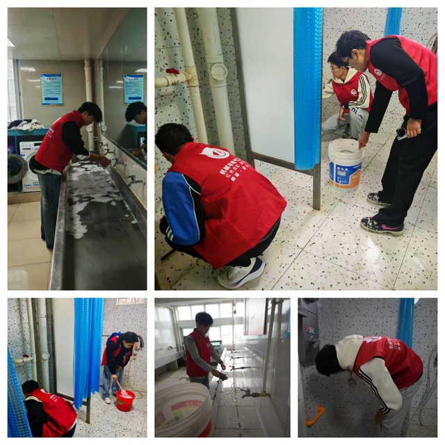 在18栋和20栋公共浴室,同学们拿起刷子和消毒水,认真清洗着每一个隔间。从喷头到地漏,不放过任何一个卫生死角。“维护公共环境的整洁,是我们每个人的责任”,参与保洁工作的2025级机械制造及其自动化专业宋鲲业同学说,“这份责任感将会一直延续到未来的学习和工作中。”通过亲身体验,同学们对校园公共服务体系有了更深入的理解。