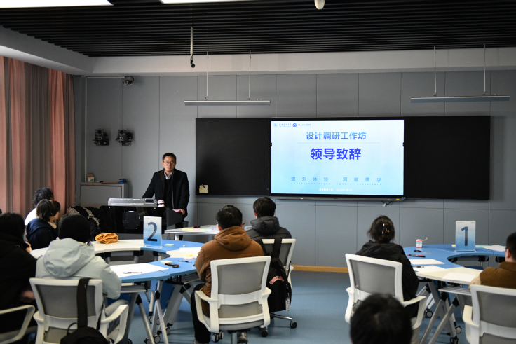 工作坊伊始,机电学院副院长刘伟出席并致辞。他对戴力农老师的到来表示热烈欢迎与感谢,并强调了在多学科融合发展的背景下,设计类研究都需要做好设计调研,本次跨学院的工作坊为不同专业背景的学生提供了宝贵的交流与学习平台,希望同学们能把握机会,切实提升发现问题、定义问题、解决问题的能力。