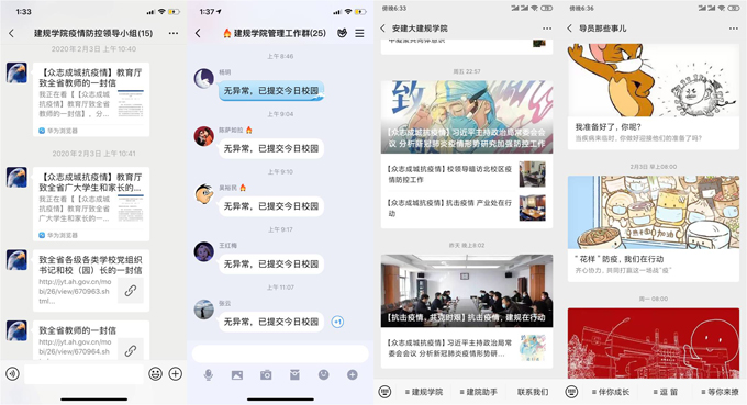 学工队伍积极投身防疫一线,强化意识、提高站位、守土尽责、发挥作用,始终坚守在引领学生思想认识、保障学生身心健康、维护校园和谐稳定的“第一线”。围绕学生、关爱学生、服务学生,针对学生的学习、生活、工作需求开展疫情期间的思想政治教育和日常事务管理工作。此外,学院辅导员在做好学生每日身体健康状况统计、电话回访的同时,积极解答学生假期的学业、就业等相关问题。为疫情期间的学子注入“强心剂”、送服“定心丸”。