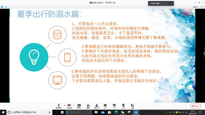 本网讯  5月12日,在第12个防灾减灾日建规学院举办安全知识线上分享会,分享会由学院团委、学生会唐开元主持,各班级积极参与。
