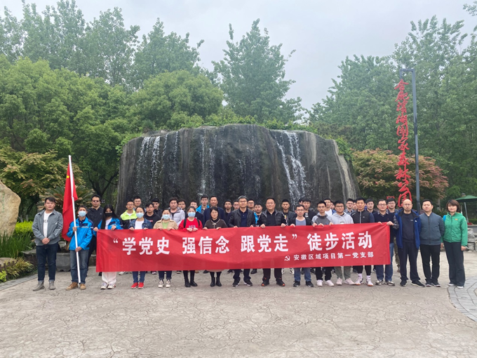 本网讯 在建党100周年即将来临之际,4月25日,安徽建筑大学建筑与规划学院建筑系教师党支部举行以“学党史 强信念 跟党走”为主题的户外徒步活动。支部书记许杰青、支部部分教师党员以及学院党建联建单位上海宝冶南京分公司安徽区域项目第一党支部书记岳燕国及所辖项目部员工共40余人参加此次活动。