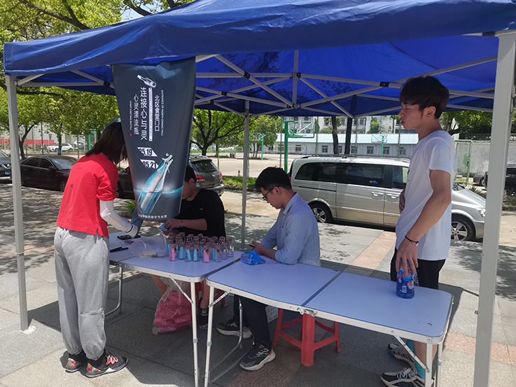 在食堂门口搭建的帐篷处,参与漂流瓶活动的同学络绎不绝,配合工作人员细心的讲解,同学们对此次活动表现出极大地兴趣,纷纷驻足留下了自己心里的“漂流瓶”。