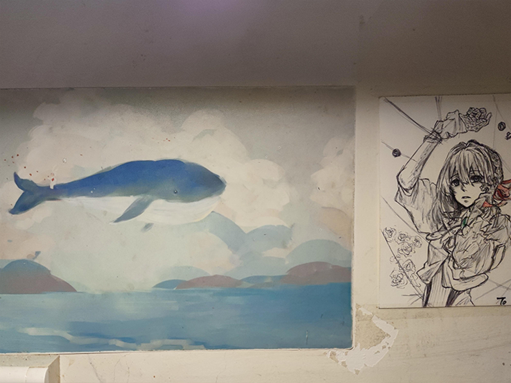 作为占据寝室大部分的墙壁,同学们发挥所长,用饰品装饰墙面,用画作营造氛围。